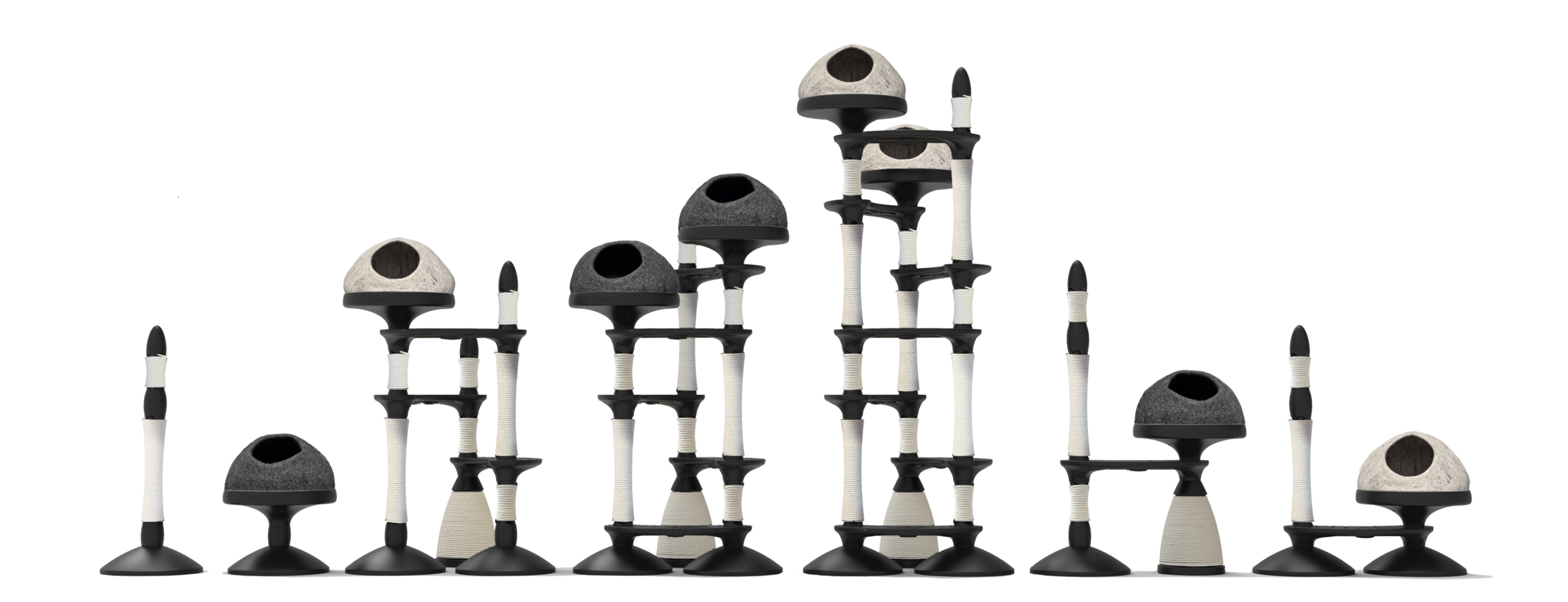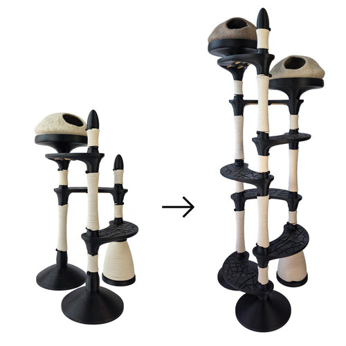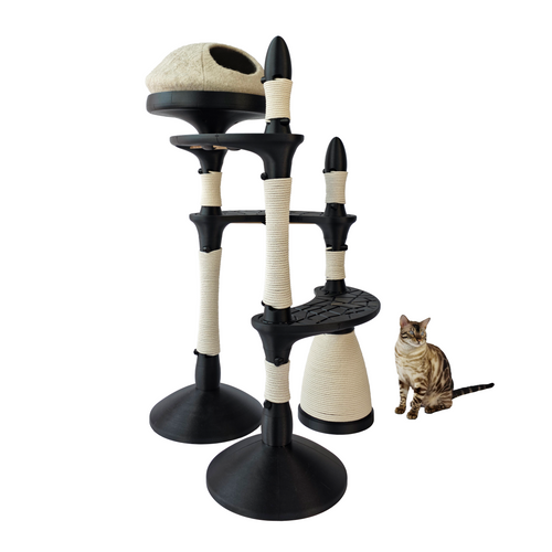 We reinvented the cat tower with real engineering and intelligent design. No carpet, no wobble, no disposable parts. Just sculptural, 3D-printed architecture that supports natural climbing, scratching, perching, and hiding.