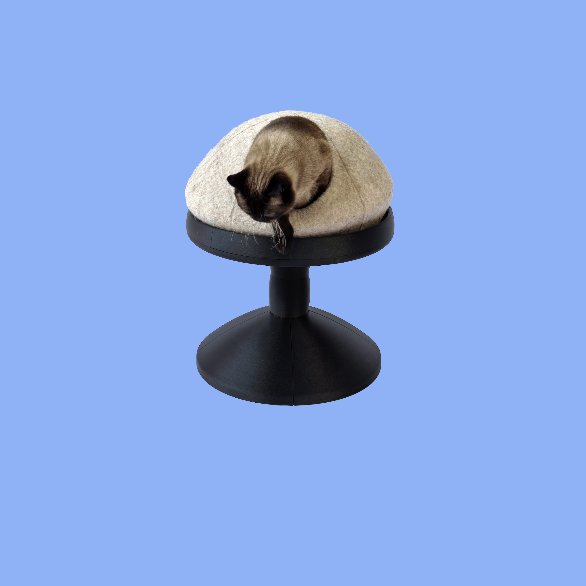 Luna gives your cat a secure, elevated place to rest and observe while staying close to you. Its wool canopy adds warmth and privacy, creating a calm, sheltered retreat. Made from durable, easy-to-clean polymer, Luna stays stable through daily use and can grow within the modular system. It’s a steady perch, a warm hideaway, and a trusted space.