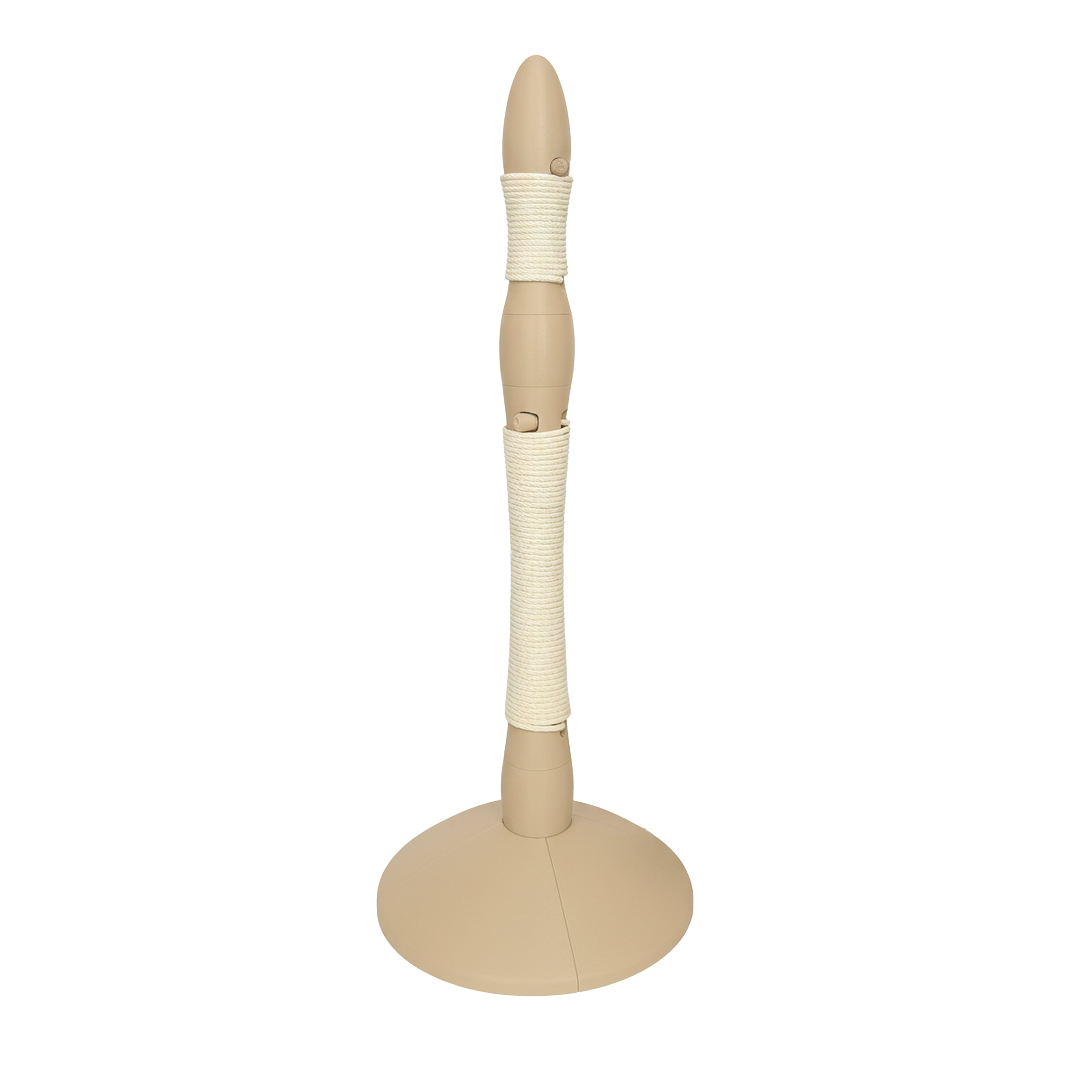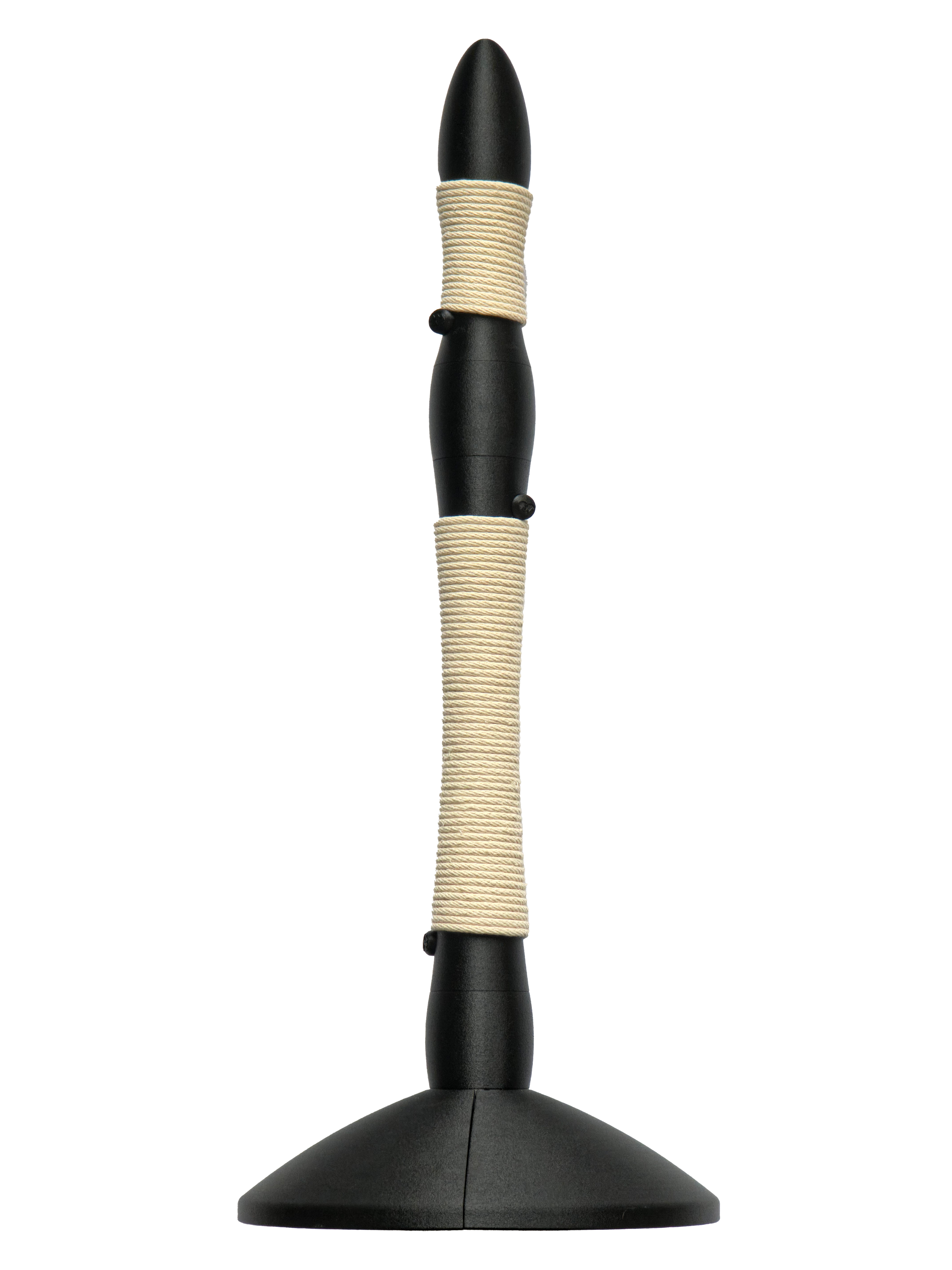 Marquis uses a tall column wrapped with 55 feet of thick, non-shedding cotton rope, held tight by a custom column geometry that prevents loosening or sliding. There are no staples, no glue, and no mess, just clever engineering that keeps the rope secure for years.